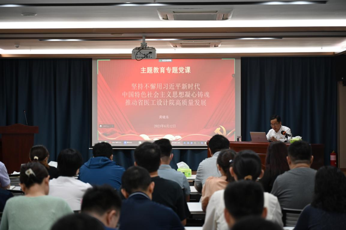為進(jìn)一步推動(dòng)學(xué)習(xí)貫徹習(xí)近平新時(shí)代中國(guó)特色社會(huì)主義思想主題教育走深走實(shí),6月12日,省醫(yī)工設(shè)計(jì)院黨總支書記、董事長(zhǎng)兼總經(jīng)理黃曉東為黨員干部講授主題教育專題黨課。